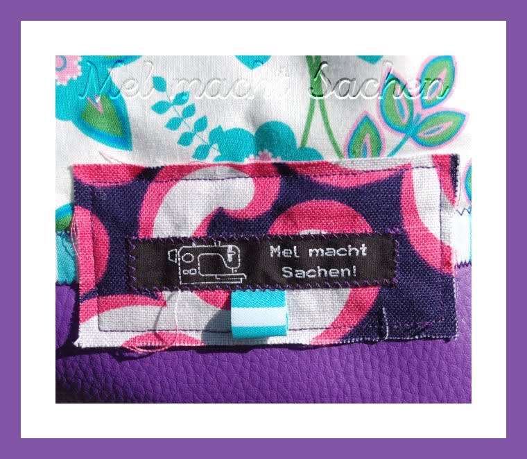 Hier mit Kunstleder, einer für mich absolut untypischen Farbkombination (Gruß an Heike *grins*) und ergänzt mit einem Original 70er Stoffschätzchen für Label und Innentasche, das super dazu passt.