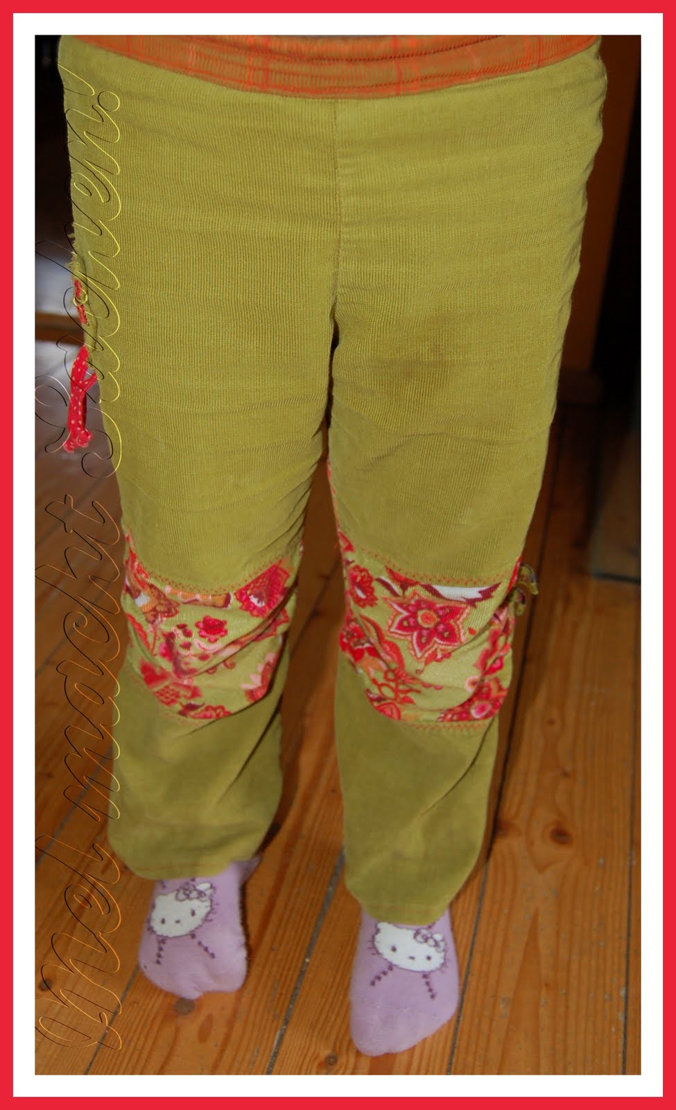 Und wie man an den Falten und Knittern sehen kann, ist die neue Hose vor dem Bildermachen schon wieder auf Kindergartentauglichkeit geprüft (und für gut befunden) worden!